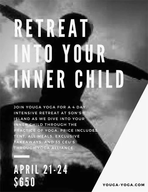 Join us over four daysof enriching programming, wholesome food, and great community all on our own island. We will tap into our inner child and deprogram ourselves from hindering conditioning. Live outside the box for four thrilling days. *All meals, tents, sleeping mattresses, and special take-a-ways included in the price. All will earn 35 CEUs recognized through Yoga Alliance.